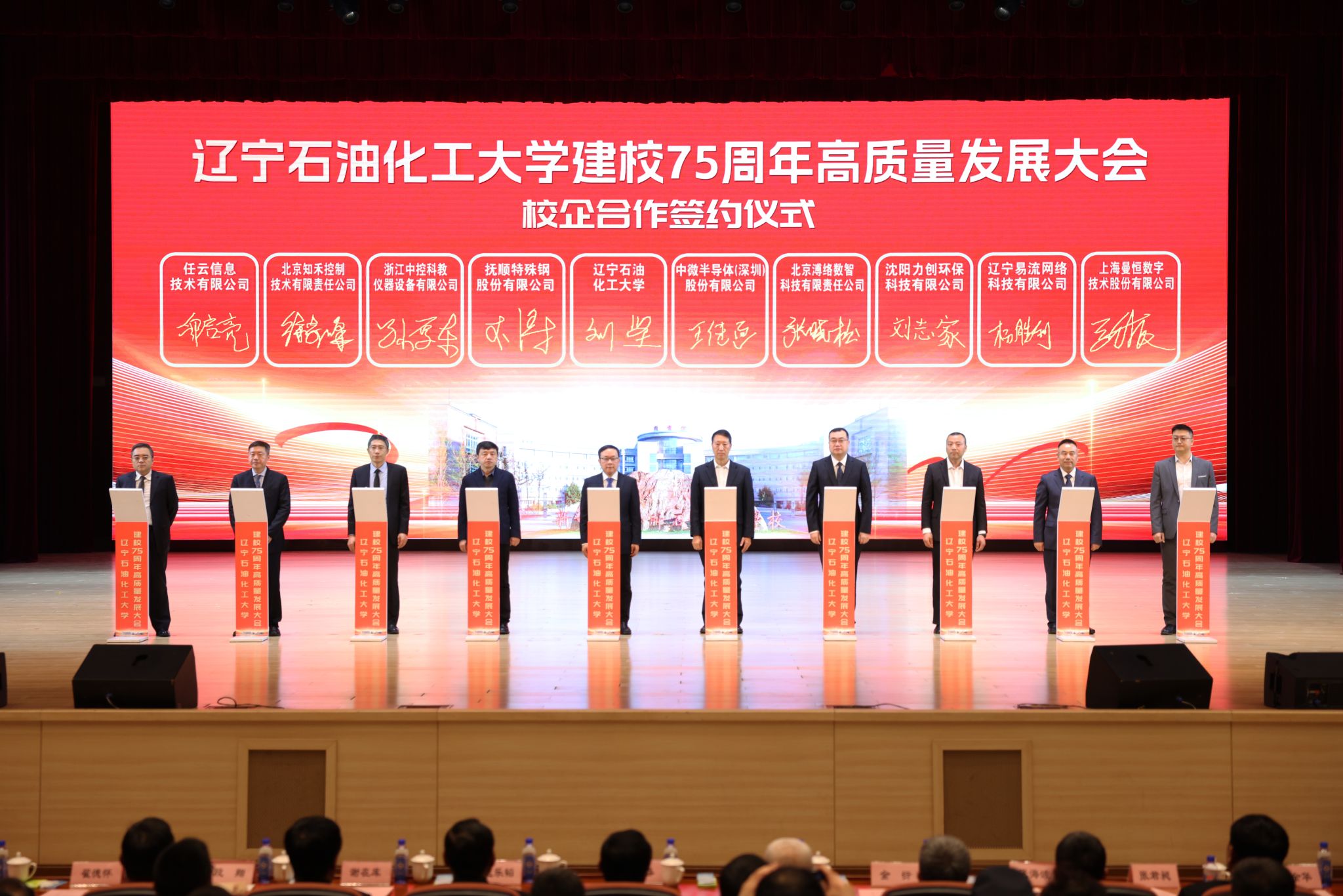 随后,举行校际校企合作签约和揭牌仪式。学校与中国石油大学(北京)、中微半导体(深圳)股份有限公司等达成战略合作。省科技厅副厅长张海波、省工信厅副厅长翟德怀、抚顺市副市长张君昶、中国地质大学(北京)副校长段翔、辽宁省化工学会理事长孙云、大连西太平洋石油化工有限公司董事长何晨光、中国石油大连石化公司总经理花小兵、我校副校长刘海峰为校际校企合作揭牌。