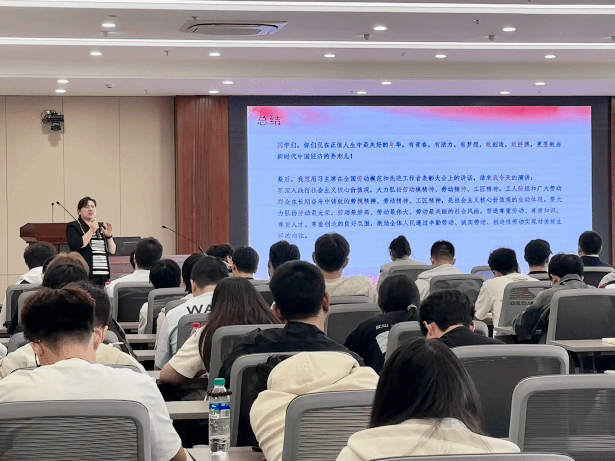 5月20日上午,马克思主义学院特邀在庆祝中华全国总工会成立100周年暨全国劳动模范和先进工作者表彰大会上被授予“全国劳动模范”称号的王秀霞同志,为学校师生讲授一堂生动的思政课。学院院长刘志丹、副院长邵宏珠、教师刘静妍及储卓2301-02、储运2304-05等170余名同学参加讲座。