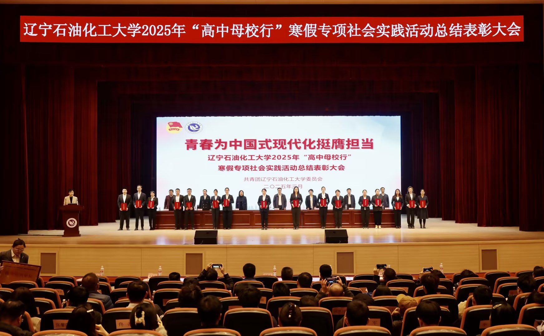 近日,学校共青团召开2025年“高中母校行”寒假专项社会实践活动总结表彰大会,校党委副书记钟俊生,宣传部、统战部、学生工作部、团委、教务处、研究生工作部部门负责人,各学院主管学生工作副书记,校、院两级专兼职团干部,学生干部及优秀团员青年代表1100人参与活动。校团委实践部部长敖雪洋主持会议。